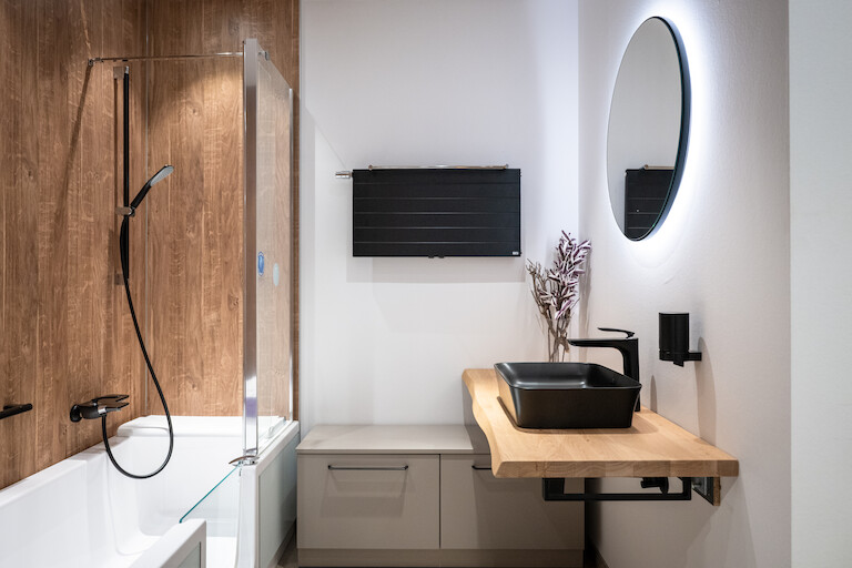 Ihr altersgerechtes Bad soll Sicherheit und Geborgenheit spürbar machen. Durch großzügige Bewegungsflächen, gut erreichbare Elemente und ein stimmiges Raumgefühl entsteht ein Bad, das müheloses Handling mit entspannter Atmosphäre verbindet. Hier zählt jedes Detail darauf, den Alltag komfortabel und angenehm zu gestalten.